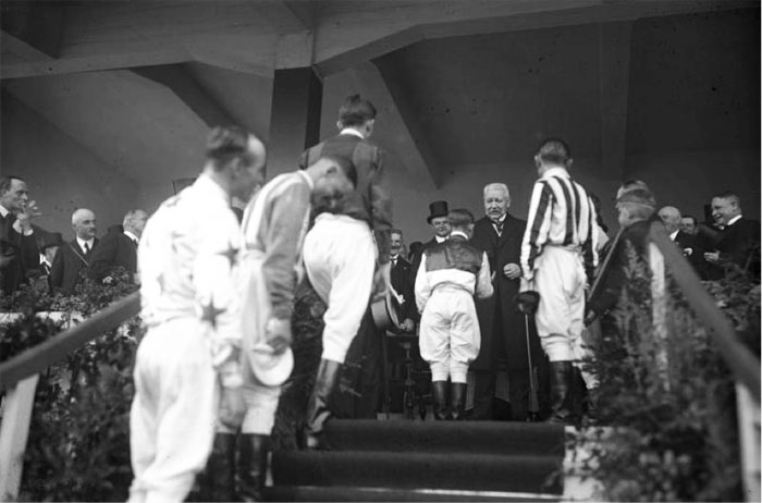 Reichskanzler v. Hindenburg überreicht 1930 in Hoppegarten den 1. Preis des Hindenburg-Rennens |