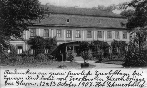 Das Gut Giesenbrügge im Kreis Soldin (My?libórz) war bereits durch viele Hände gegangen, als es 1897 von Alexander v. Treskow-Friedrichsfelde (1856-1939) übernommen wurde, der im gleichen Jahr das elterliche Gut Chodowo bei Kutno verkauft hatte. Treskow erwarb das 915 Hektar große Gut aus dem Nachlass von Heros v. Borcke (1835-1895), der als Major der Nord-Virginia-Armee am Amerikanischen Bürgerkrieg teilgenommen hatte. Borcke zog in Giesenbrügge angeblich bis zu seinem Lebensende die Flagge der Konföderierten auf. Das spätbarocke Herrenhaus aus der zweiten Hälfte des 18. Jahrhunderts lag in einem sechs Hektar großen Park am Rande der Soldiner Seenplatte. Friedrich Wilhelm I. hatte den von holländischen Kolonisten gegründeten Ort in der Neumark 1730 besucht und die Dorfschule inspiziert - Adolph Menzel hielt diese Szene 1858 in einem populären Bild fest. Nach dem ersten Weltkrieg bis zum Jahre 1926 versuchte Alexanders Bruder Walter v. Treskow (1855-1923), der 1890 bereits die Dresdner Rennbahn begründet hatte, in Giesenbrügge einen eigenen Rennstall aufzubauen.