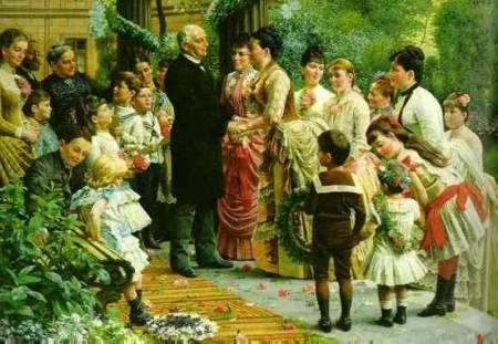 Familie 1887. Die 32-jährige Tochter Julie gratuliert ihrem Vater (Deutsches