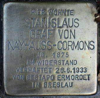 Ihr jüngster, 1875 in Niederbaumgarten geborener Sohn Stanislaus wurde im Juni 1933 in Breslau von der Gestapo ermordet: er war Autor der 1931 unter dem Pseudonym Clemens v. Caramon erschienenen Broschüre "Führer des Dritten Reichs!", in der das kriminelle Vorleben prominenter SA-Führer erläutert wurde. Seit 2009 erinnert in Berlin-Friedenau vor seiner Wohnung in der Stierstr. 4 ein Stolperstein an den grausamen Tod von Stanislaus Graf v. Nayhauss.